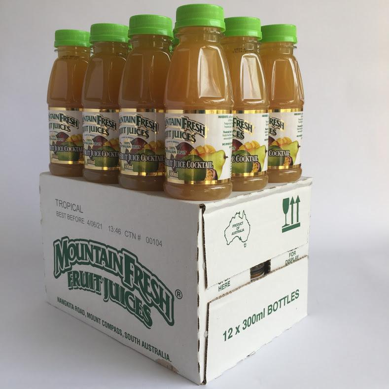 Nước ép trái cây nguyên chất Mountain Fresh Fruit Juice chai 300ml (trái cây nhiệt đới) được mix nhiều loại trái cây cao cấp theo cách pha cocktail đặc biệt, với công nghệ ép lạnh tiên tiến đảm bảo nước ép trái cây đóng chai PET vẫn giữ được mùi vị thơm ngon các enzim và nhiều vitamin có trong trái cây tươi được giữ nguyên.